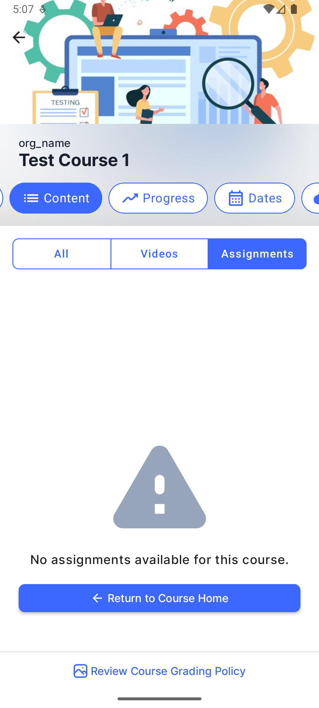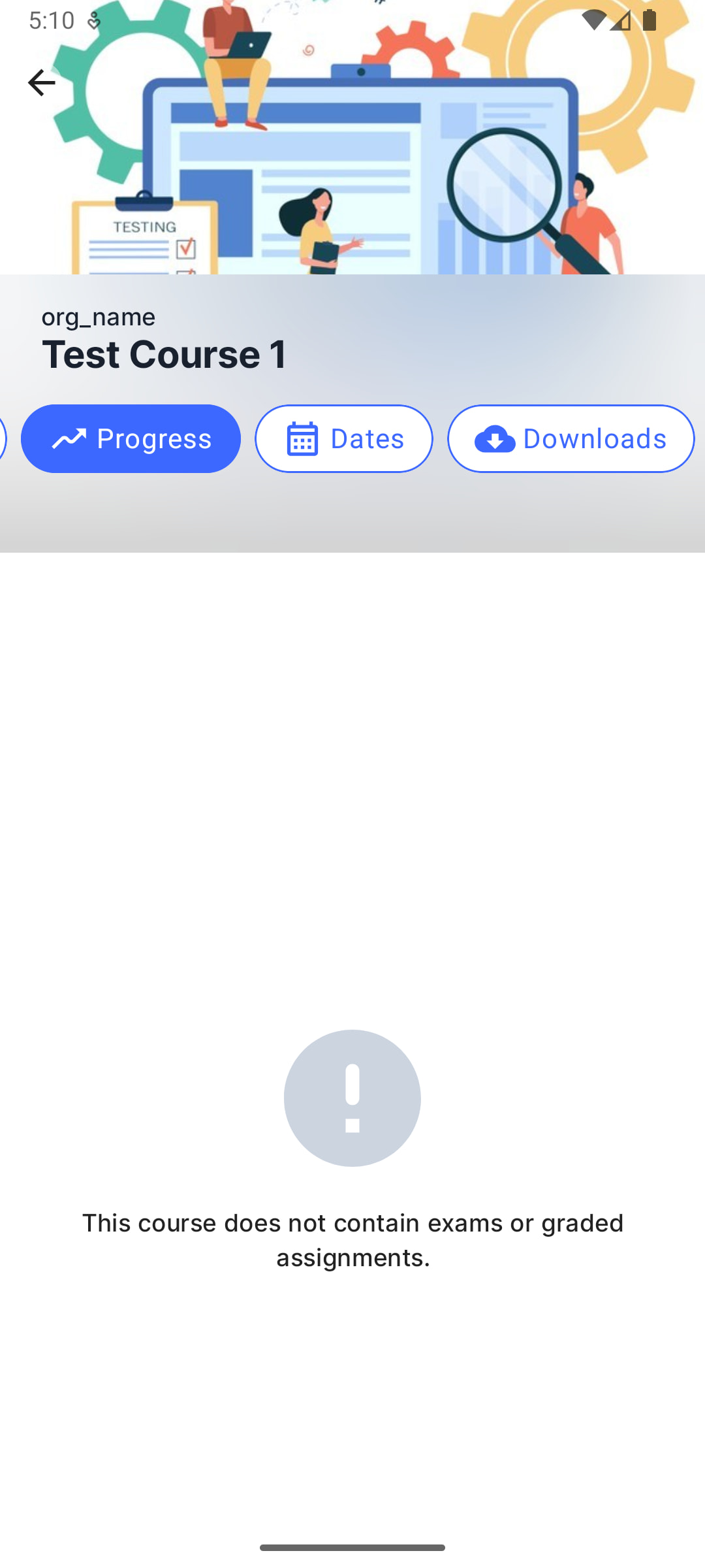 Issue - 3: When switched to Progress tab it says, “This course does not contain exams or graded assignments.“